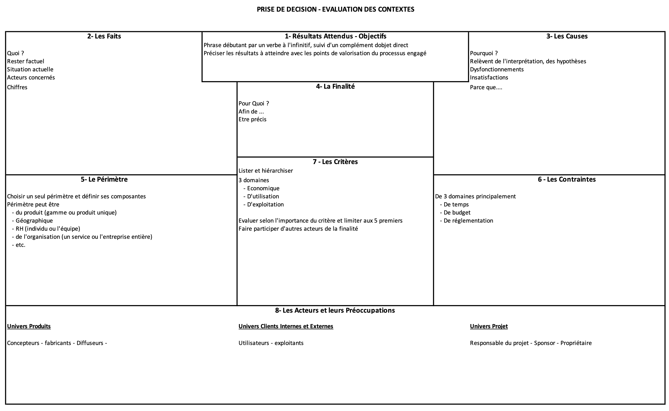Cet outil aborde les différents contextes affectés par la décision à prendre.